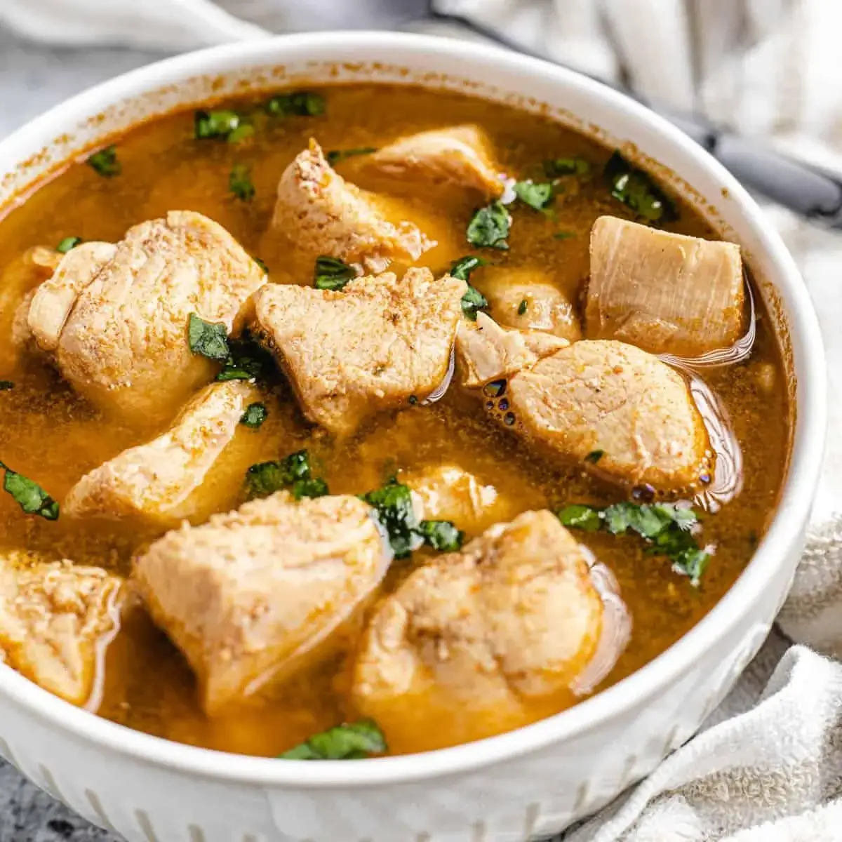 Light, spicy broth cooked with tender chicken pieces and traditional aromatic spices.